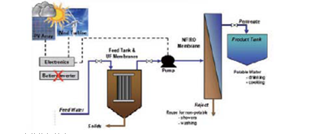 rosi系统由三个关键部分构成:通过太阳能/风能驱动的水泵,高品质超滤器,纳米过滤器/反渗透膜。