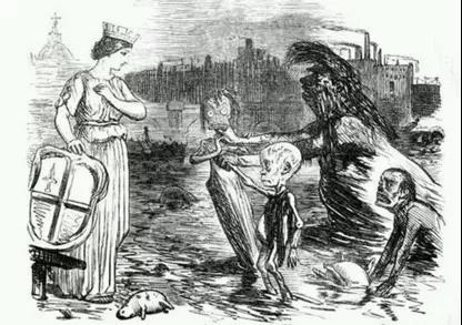 由于水源遭受污染,伦敦市霍乱频发,仅1832-1854年就有超过3万人死于霍乱。1858年泰晤士河更是爆发了著名的“大恶臭”。曾经的母亲和已经变成了一条“死河”,不仅河水里的鱼虾全部死亡,还在带走河岸上的生命。