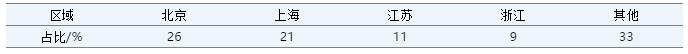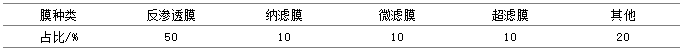 我国的膜产业体系庞大,其中反渗透膜(ro)占据50%左右的市场,纳滤膜(nf)、超滤膜(uf)、微滤膜(mf)各占10%,剩下20%被电渗析膜、气体分离膜、无机陶瓷膜、透气膜及其他类型所占据,详见表5。时代沃顿科技有限公司、蓝星东丽膜科技有限公司占据国内反渗透膜70%以上的市场份额;北京碧水源科技股份有限公司每年可生产微滤膜和超滤膜1000万m2;其他公司如海南立昇净水科技有限公司、江苏久吾高科等公司在微滤超滤膜领域的年产能力也达到几百万平方米;津膜科技有限公司作为国内最大的膜法自来水厂,日处理量达50万t。我国在北京、上海、天津、杭州等地有从事膜技术研发的高校研究所,给膜企业提供了强大的技术和科研支撑,因此,在区域竞争格局方面,我国知名膜企业主要分布在北京和江浙沪地区,北京以26%占据首位,上海以21%的占比紧随其后,江苏与浙江分别有11%与9%的份额,详见表6。膜企业中,国有企业及事业单位约占50%,另外50%包括民营、外资、合资、个体等多种形式。