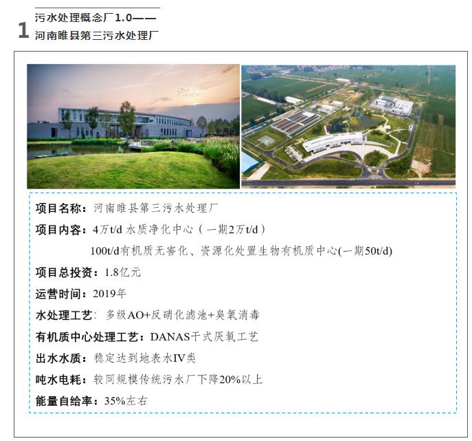 几年过去,当初的设想已经付诸实践。其中,河南睢县第三污水处理厂被认为是中国污水处理概念厂的1.0版本。该厂践行污水处理概念厂的四个追求,开展水-肥-气综合利用,能量自给率达到35%,相比我国传统污水厂,已经取得较大突破。目前,江苏省宜兴市正在兴建概念厂2.0版本,预期能量自给率可达到85%。