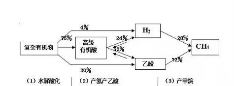 3.产甲烷阶段。产甲烷菌将乙酸、氢及二氧化碳转化为甲烷。