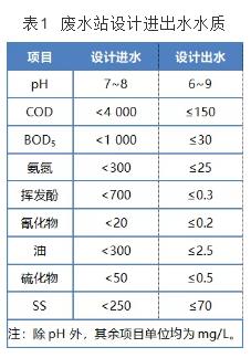 废水站处理出水水质需满足《炼焦化学工业污染物排放标准》(gb 16171—2012)中的新建企业间接排放标准要求。设计进出水水质见表 1。
