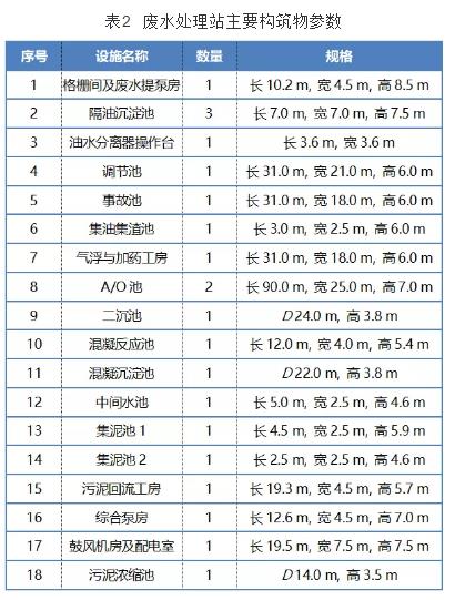 酚氰废水处理站主要构筑物参数如表 2所示。