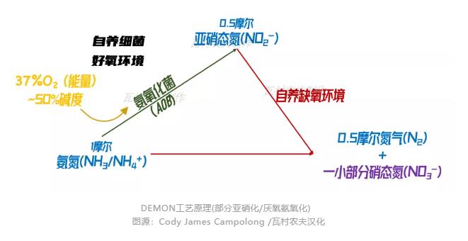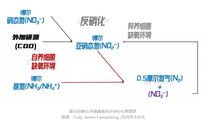 为什么要选择进行部分反硝化的反应呢?请大家先再看一眼上边的图片:部分亚硝化/厌氧氨氧化(partial nitritation-anammox)除了能将亚硝酸盐和氨氮转化成氮气之外,还不可避免地生成硝酸盐。