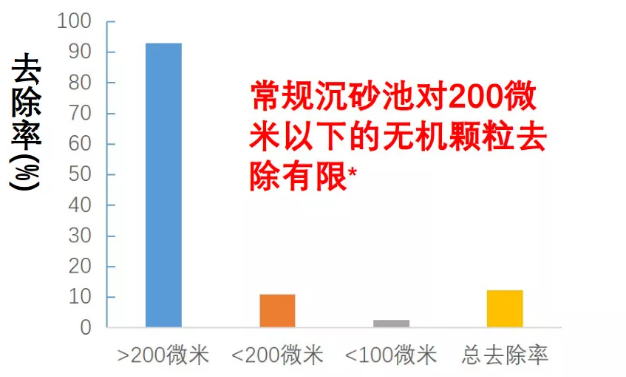 4、要针对实际进水的无机物颗粒大小进行设施设备的合理选型或改造,针对长期无法出砂的设备,要进行除砂机制的改造和提升,特别是一些沙化严重的城镇污水厂,低于0.2mm的砂粒大量存在,但是无法有效去除,就需要对沉砂池进行优化改造,现在也有沉砂的优化设施,对小粒径的砂粒的去除效果有所提升。