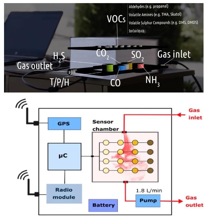 在传感器方面,他们同时配备了电化学和金属氧化物传感器,将两者的优点都结合到一起。封装好的装置可以测量多种气体: