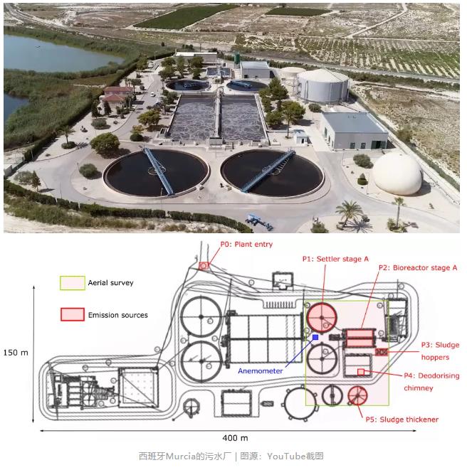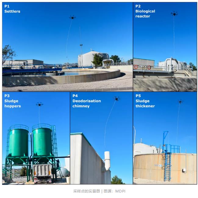 他们在西班牙的murcia污水厂进行实地测试。采样地点包括了沉淀池、生物反应池、污泥浓缩池、污泥储存室、除臭室烟囱。