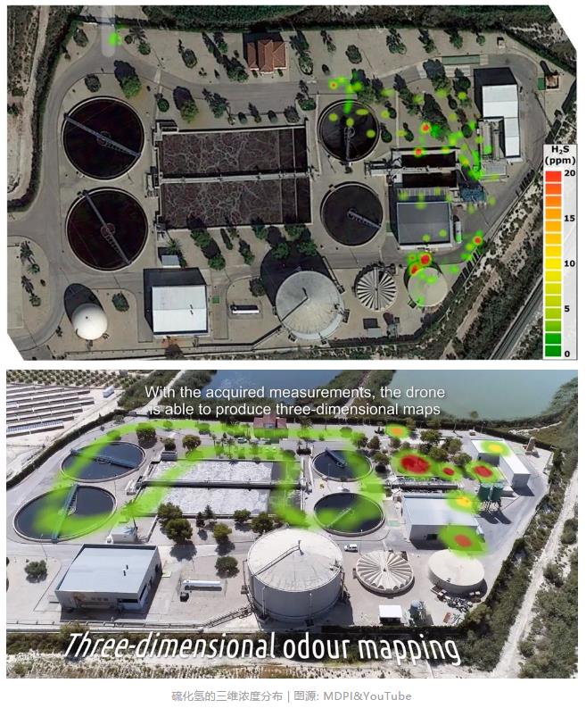 和上述两种方法相比,使用无人机来监测臭气排放有许多优点,例如它们可以测量污水厂不同位置的关键嗅味化合物的浓度,包括一些过去操作人员难以到达的位置。这意味更高的空间分辨率、更低的风险和更低的成本。这些数据信息能为处理工艺提供建议反馈,优化气体扩散模型,更好地预测对污水厂周围的臭气影响,帮助厂区更好地识别无组织排放。