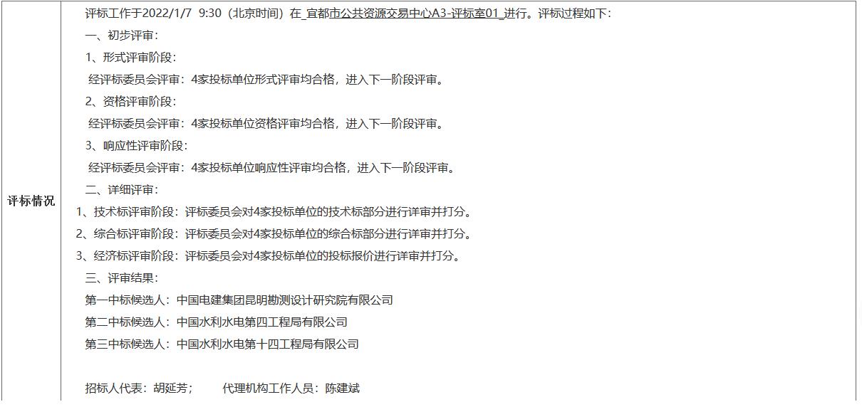 长江宜都段生态保护与绿色发展eod项目(一期)于2021年12月7日在宜都市公共资源交易信息网发布招标公告,2022年1月7日9时0分在宜都市公共资源交易中心开标、评标 ,根据评标委员会提交的评标报告,现将中标候选人公示如下: