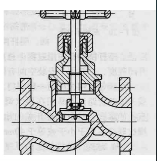 4、 截止阀阀体的结构形式有直通式、直流式和直角式。直通式是最常见的结构,但其流体的阻力最大。直流式流体阻力较小,多用于含固体颗粒或粘度大的流体。直角式阀体多采用锻造,适用于较小通经、较高压力的的截止阀。