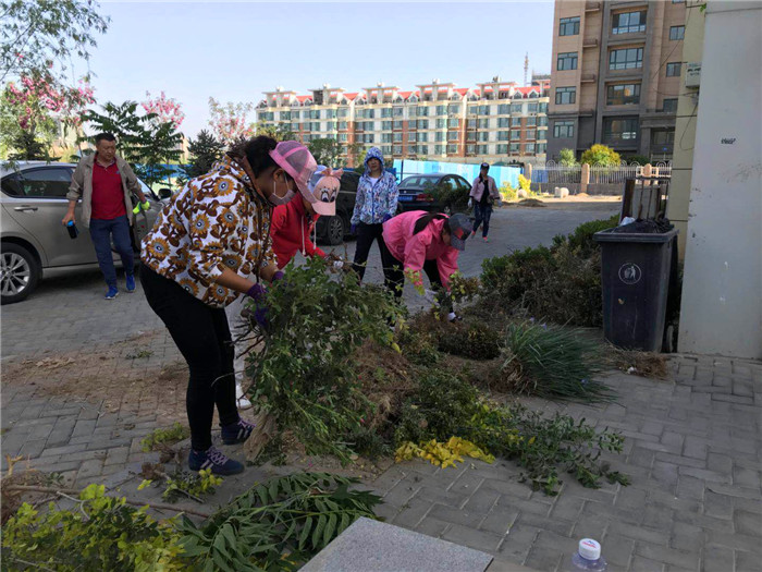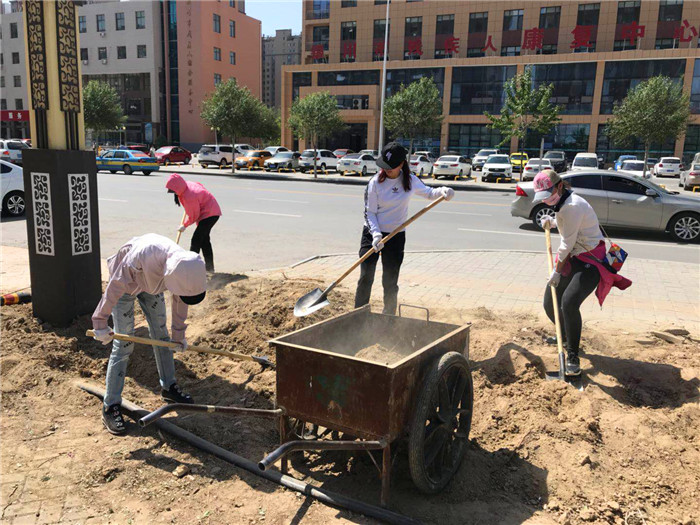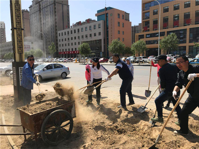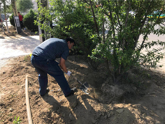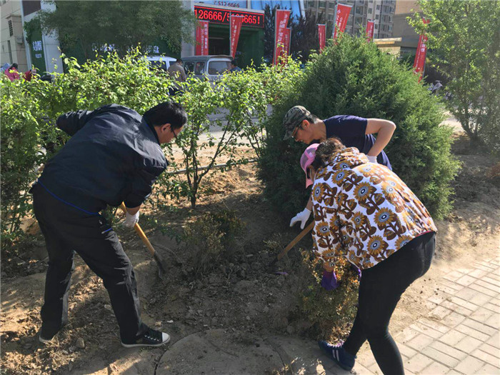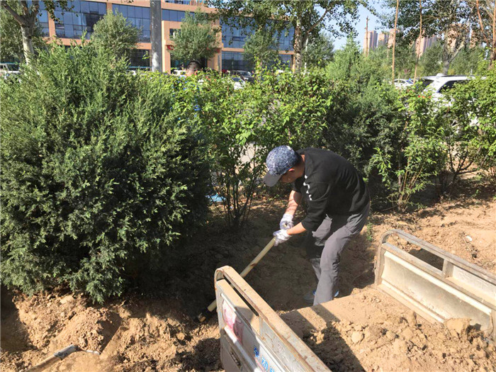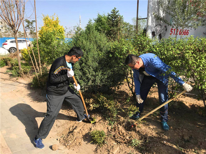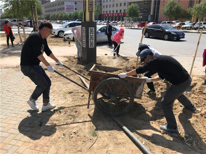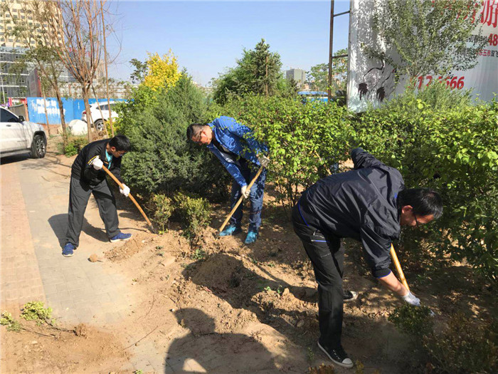 k1体育集团于4月28日组织全体员工进行绿化劳动,对k1体育名庭售楼中心绿化进行维护。